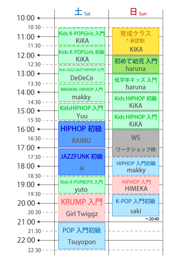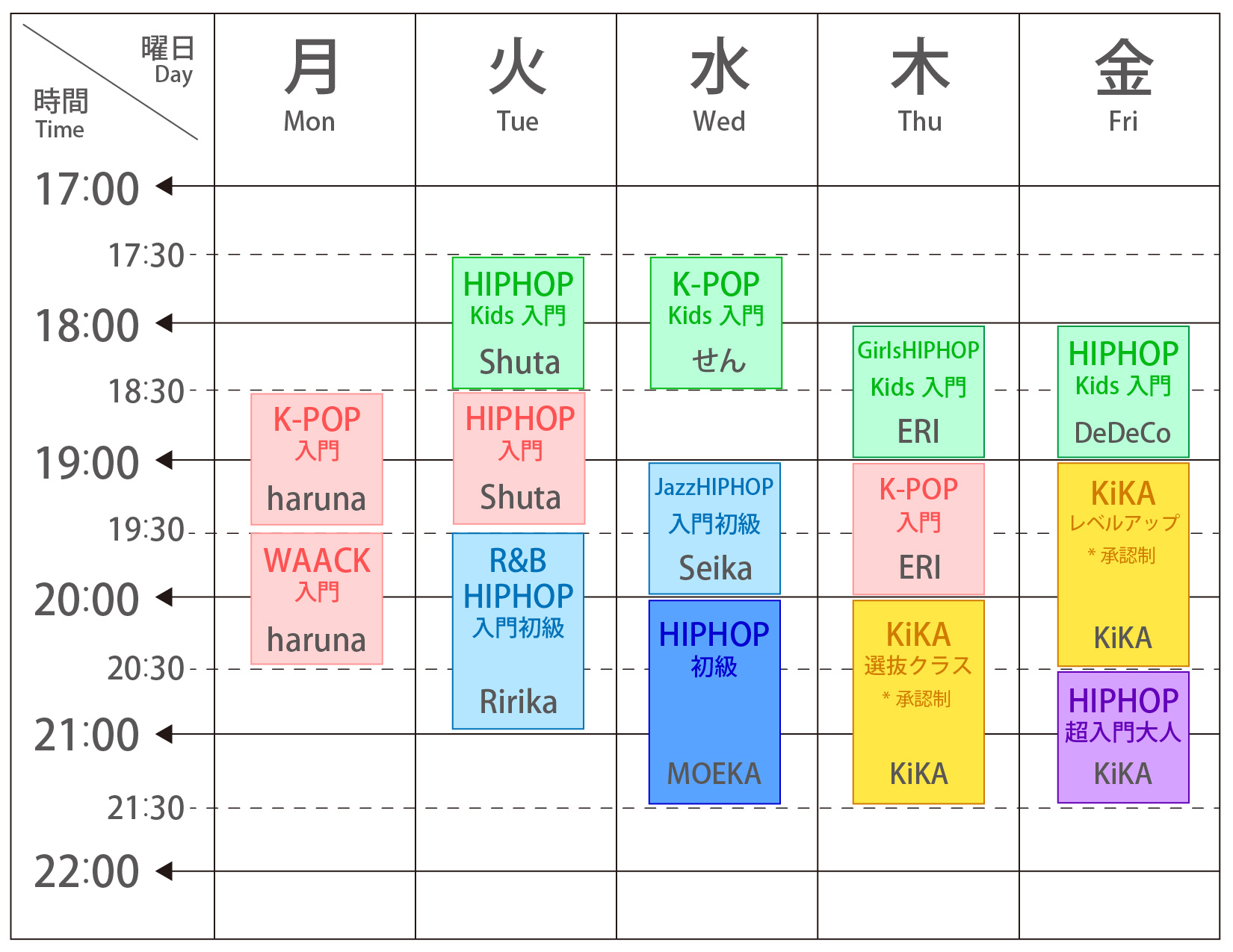 先生のダンス活動や体調不良などで、レッスンが休講または、代講になる場合がございます。予めご了承くださいませ。
